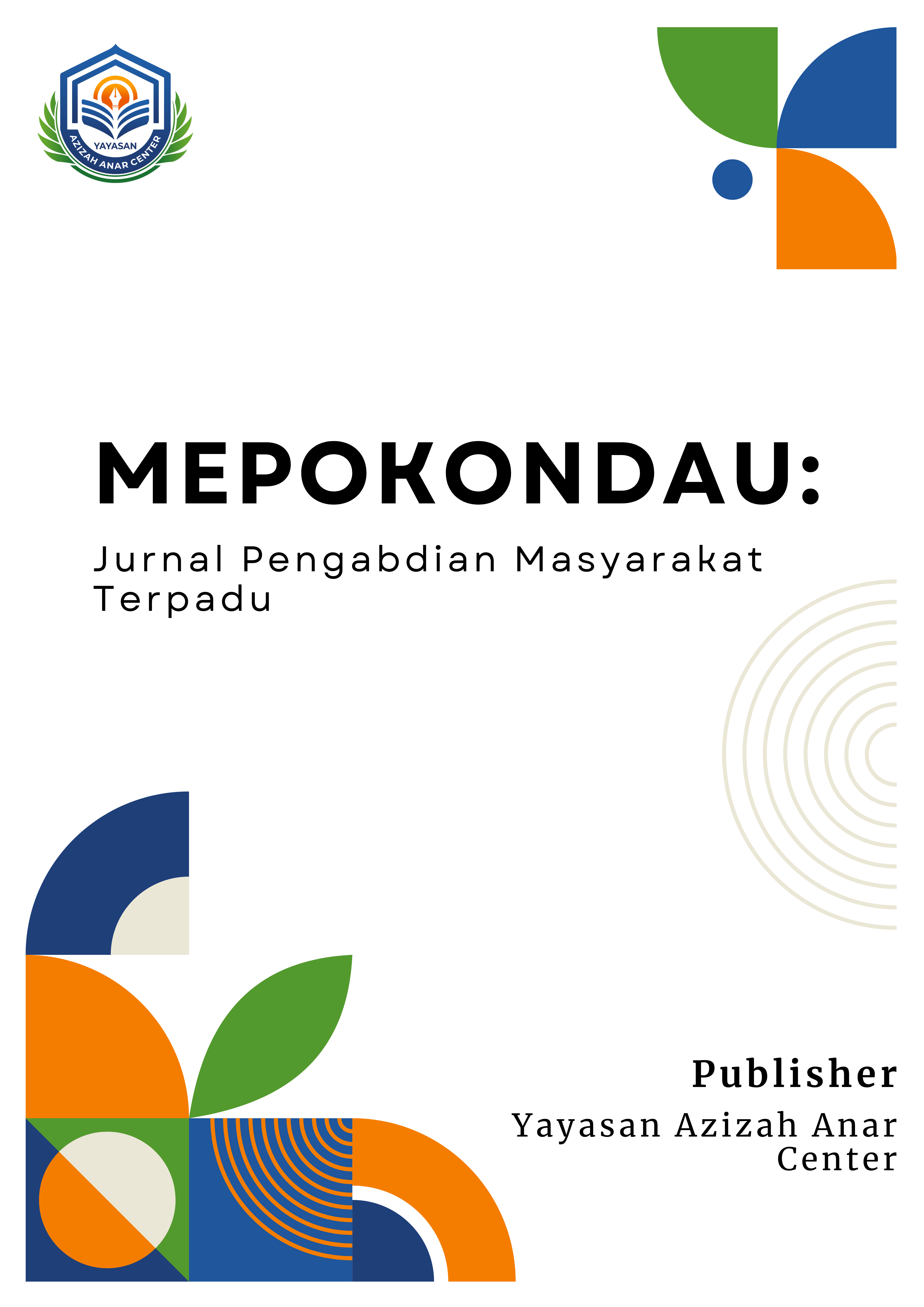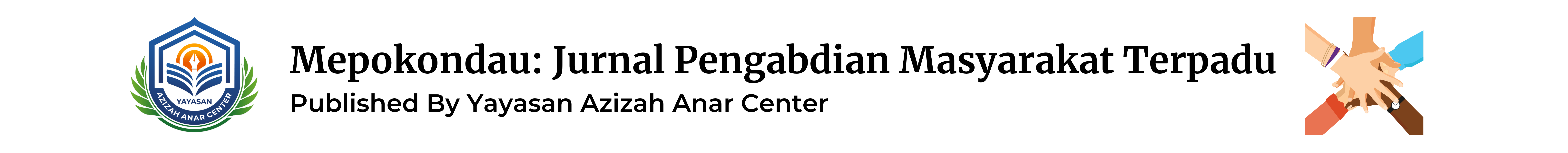 Mepokondau: Jurnal Pengabdian Masyarakat Terpadu is a peer-reviewed journal published by Yayasan Azizah Anar Center. Mepokondau provides open access to the principle that research published in this journal is freely available to the public to support the exchange of knowledge globally. Mepokondau published two-issue articles per year namely May and November. Mepokondau provides a place for academics, researchers, and practitioners to publish scientific articles. all manuscripts sent to the Mepokondau editor are accepted in Bahasa Indonesia or English. The scope of the articles listed in this journal relates to various topics, including education for Sustainable Development, Community Services, People, Local Food Security, Nutrition and Public Health, Training, Marketing, Appropriate Technology, Design, Community Empowerment, Social Access, Student Community Services, Border Region, Less Developed Region. This journal is available in print and online and highly respects the ethics of publication and avoids all types of plagiarism.